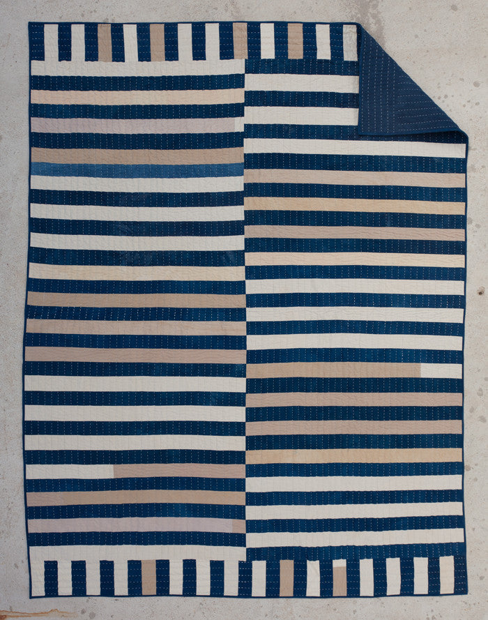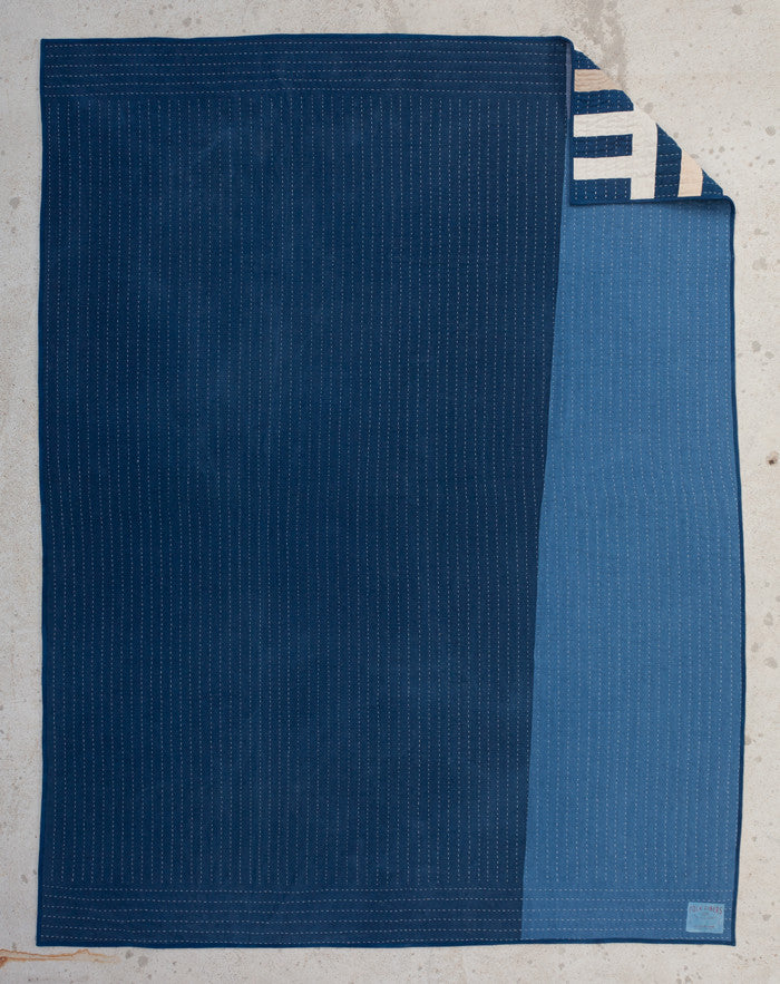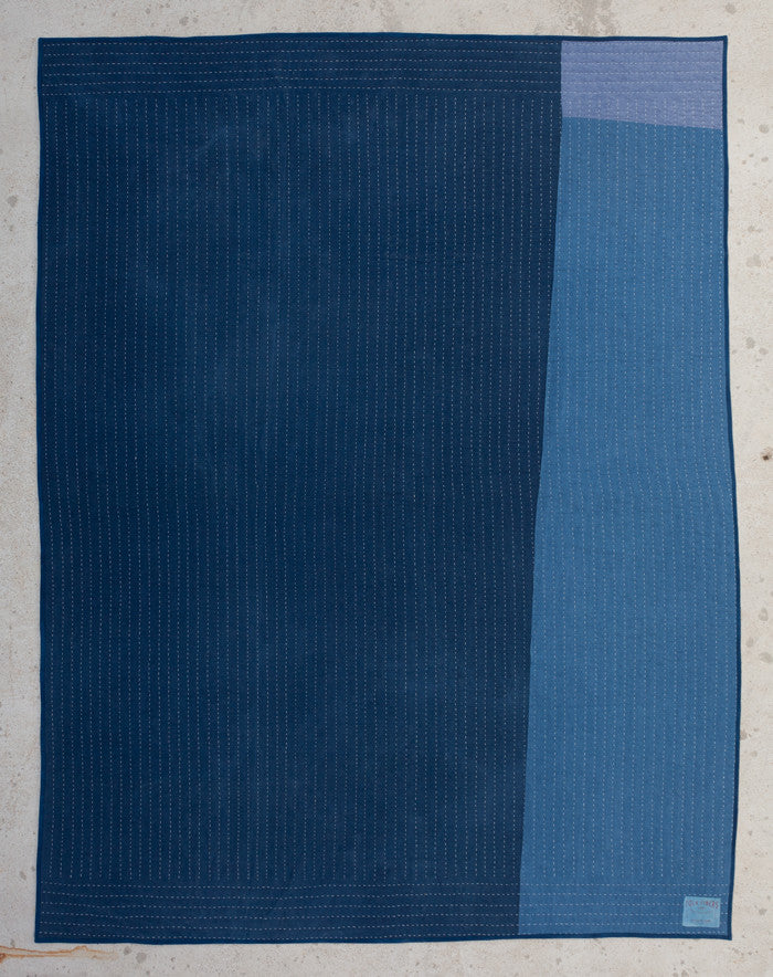 Hand quilted with sashiko thread, padded with cotton batting and trimmed with a hand-stitched binding.
