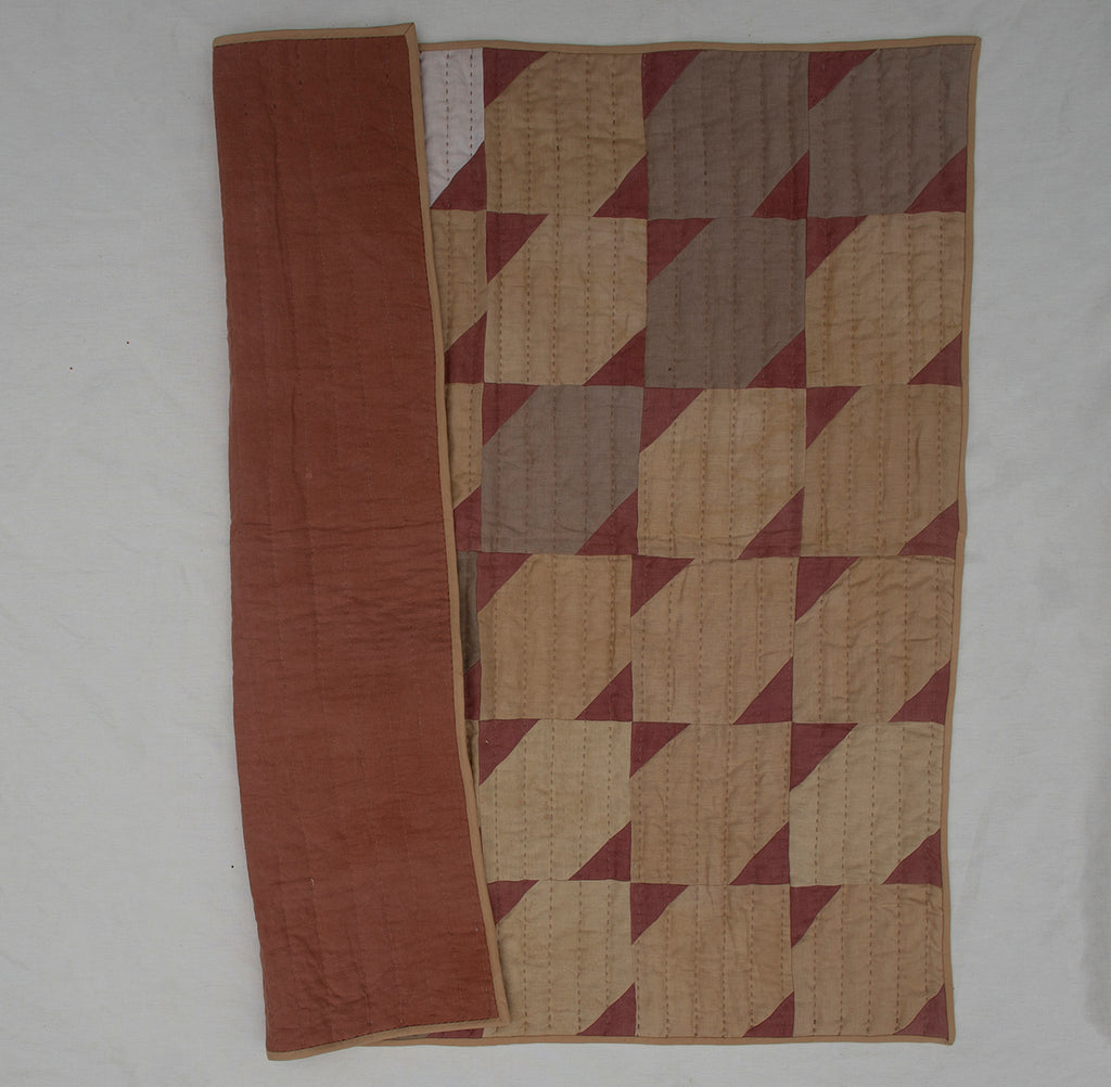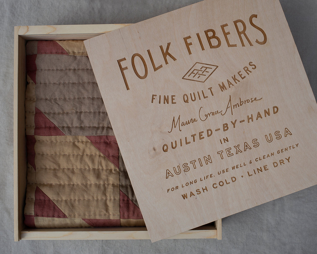 Hand quilted with hand-dyed Japanese sashiko thread to match the quilt. padded with cotton batting and trimmed with hand-stitched binding.