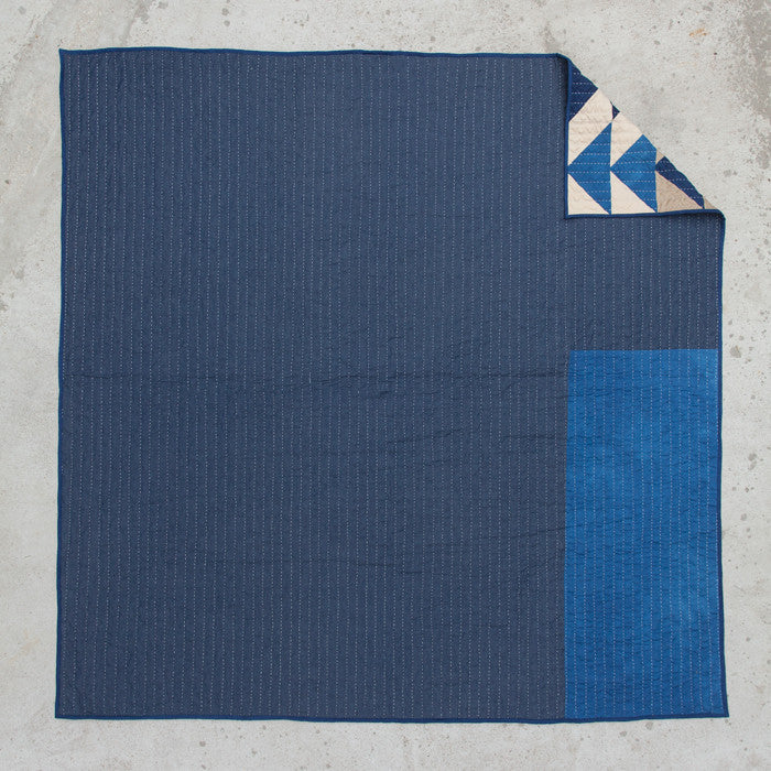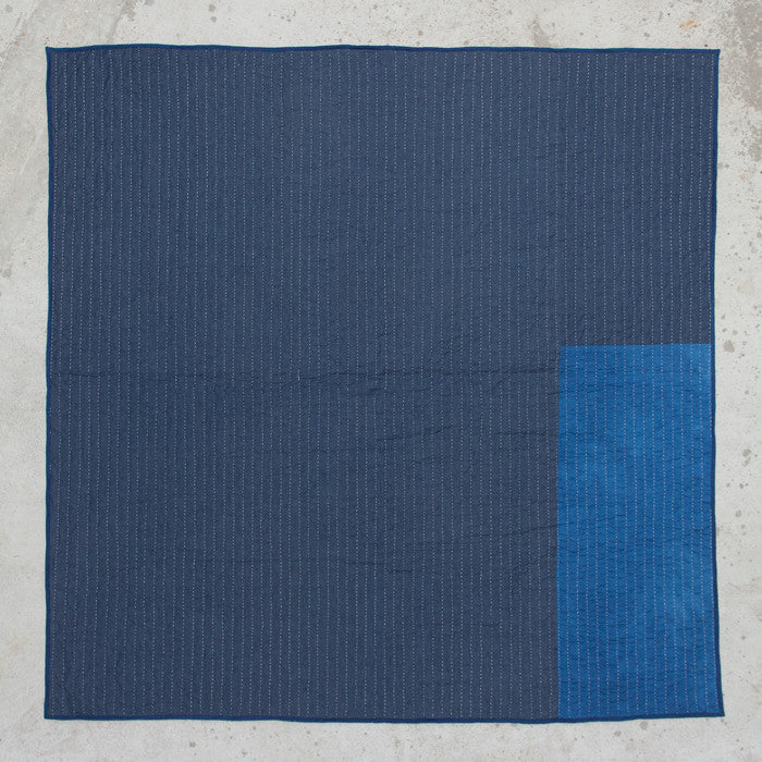 Hand-quilted with cotton Japanese Sashiko thread, padded with cotton batting, and trimmed with hand-stitched double-fold binding.