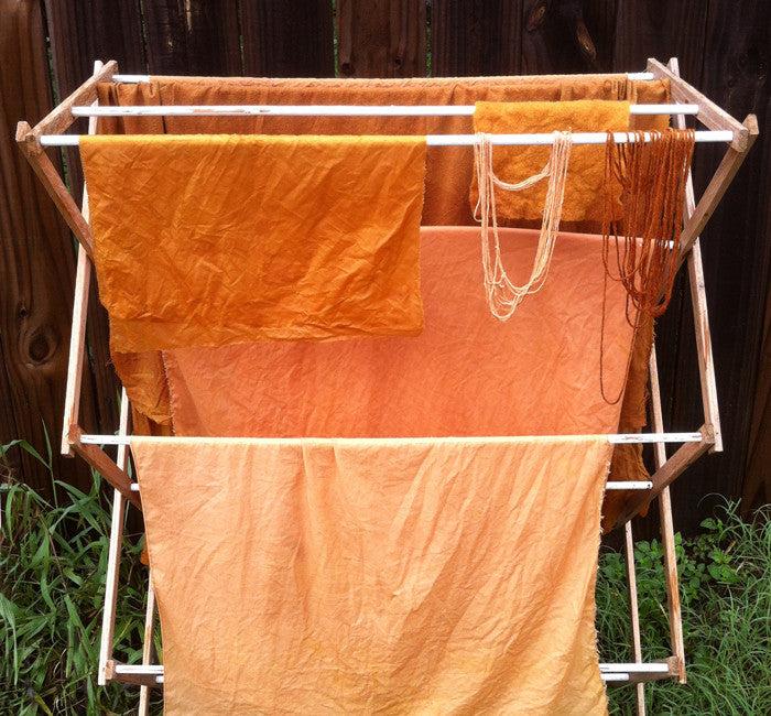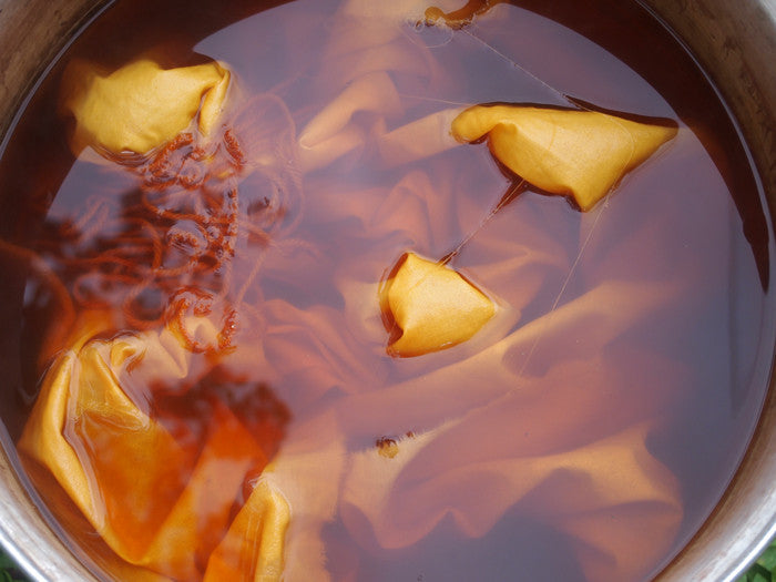 The yellow fabrics are achieved using the heartwood of the Osage tree. The subtle shifts in tones feel abstract and intuitive.