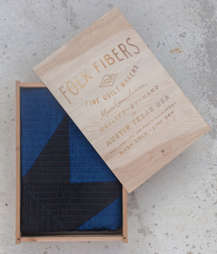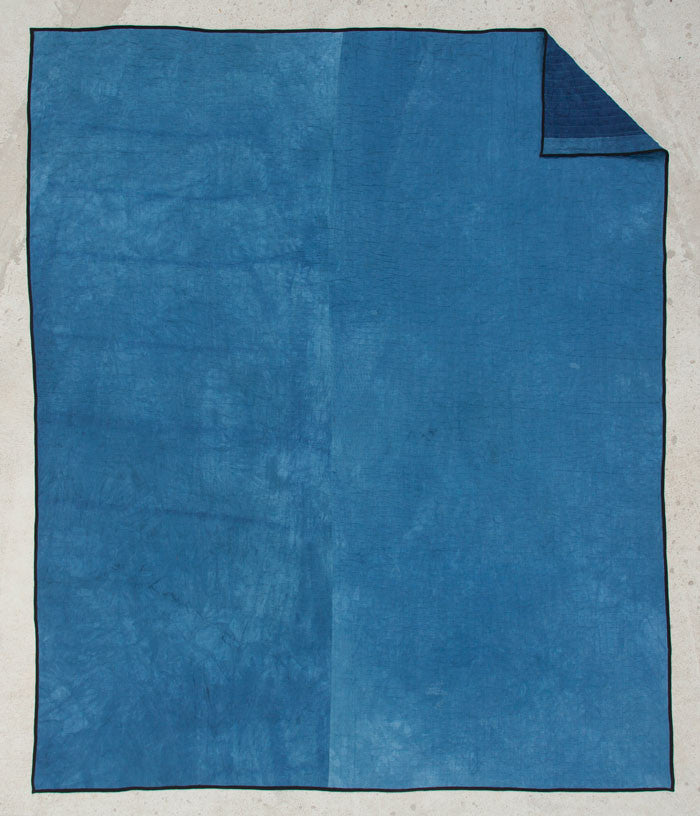 Hand-quilted with cotton Japanese Sashiko thread, padded with cotton batting, and trimmed with hand-stitched double-fold binding.