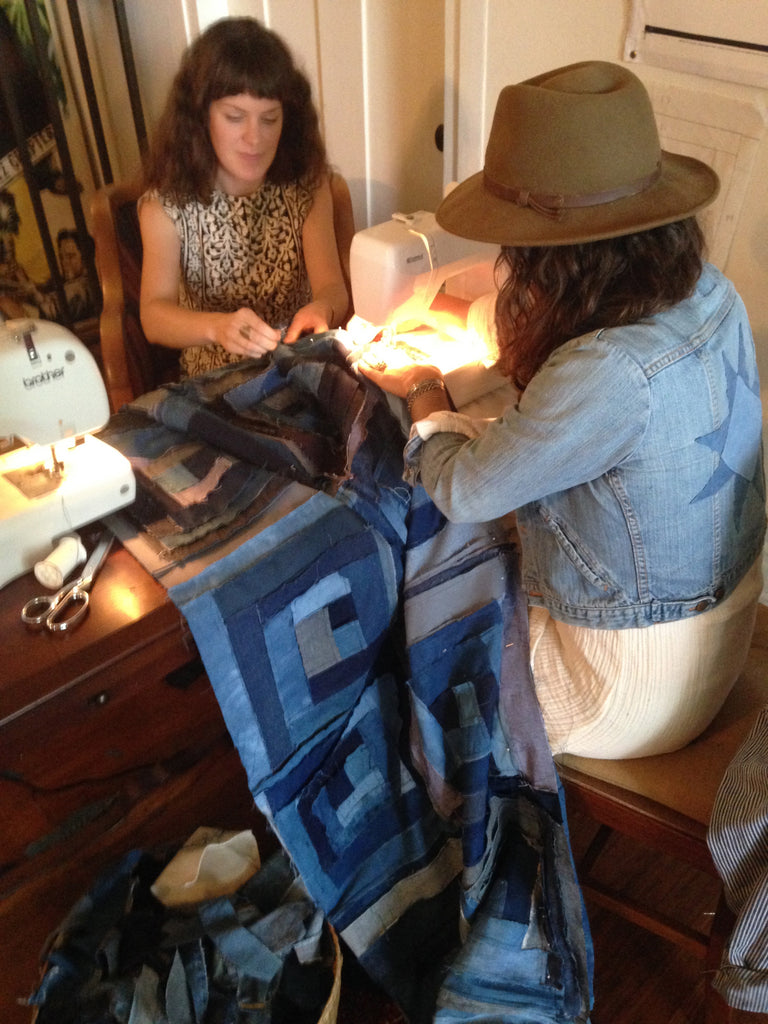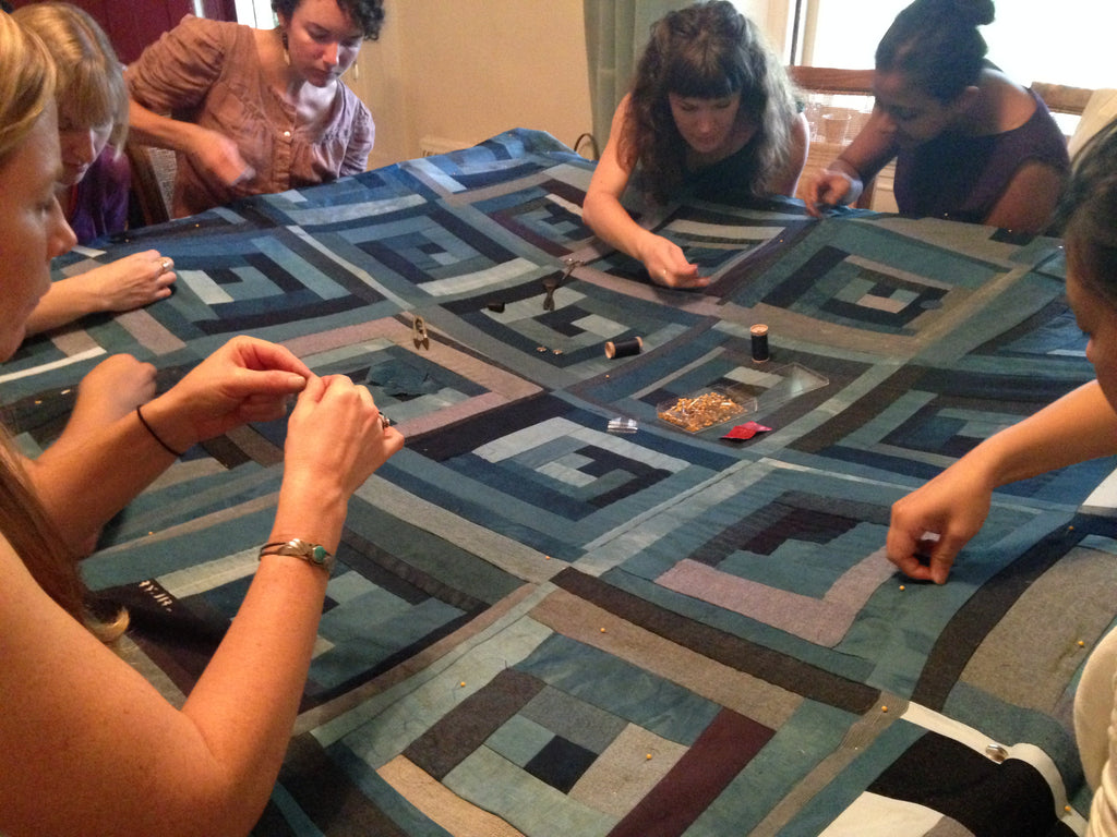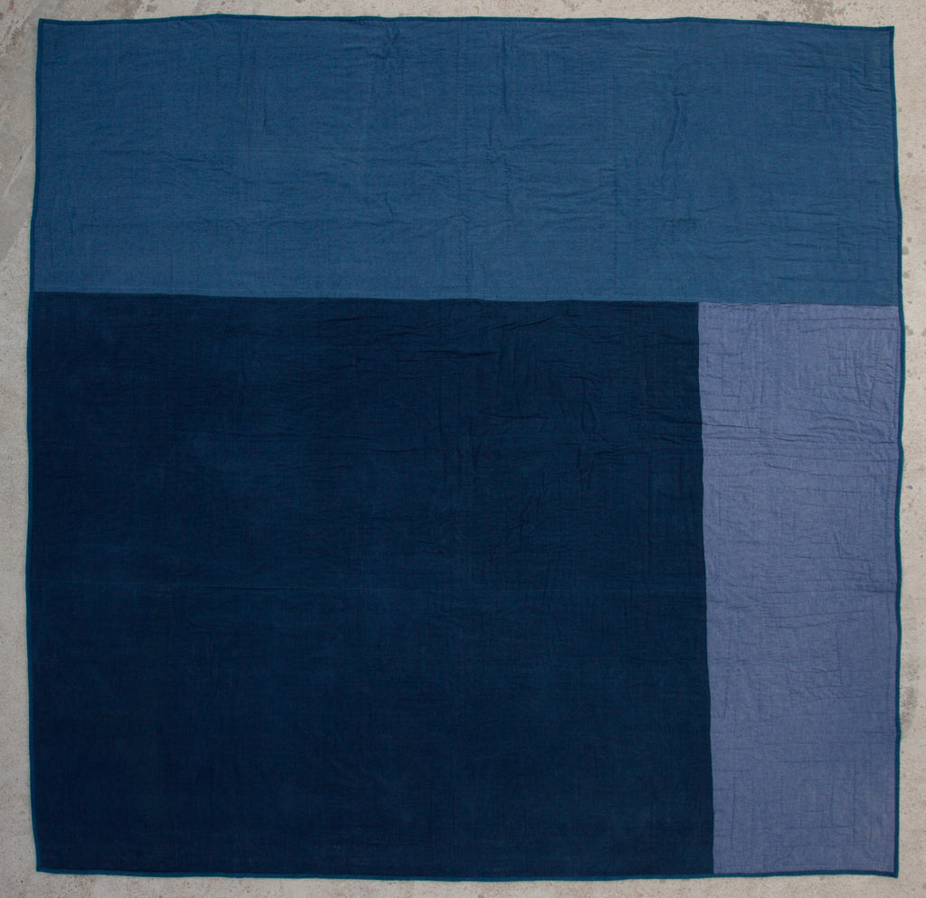 Machine pieced using cotton and linen dyed with natural indigo. Hand quilted as a group workshop with Ace Camps.